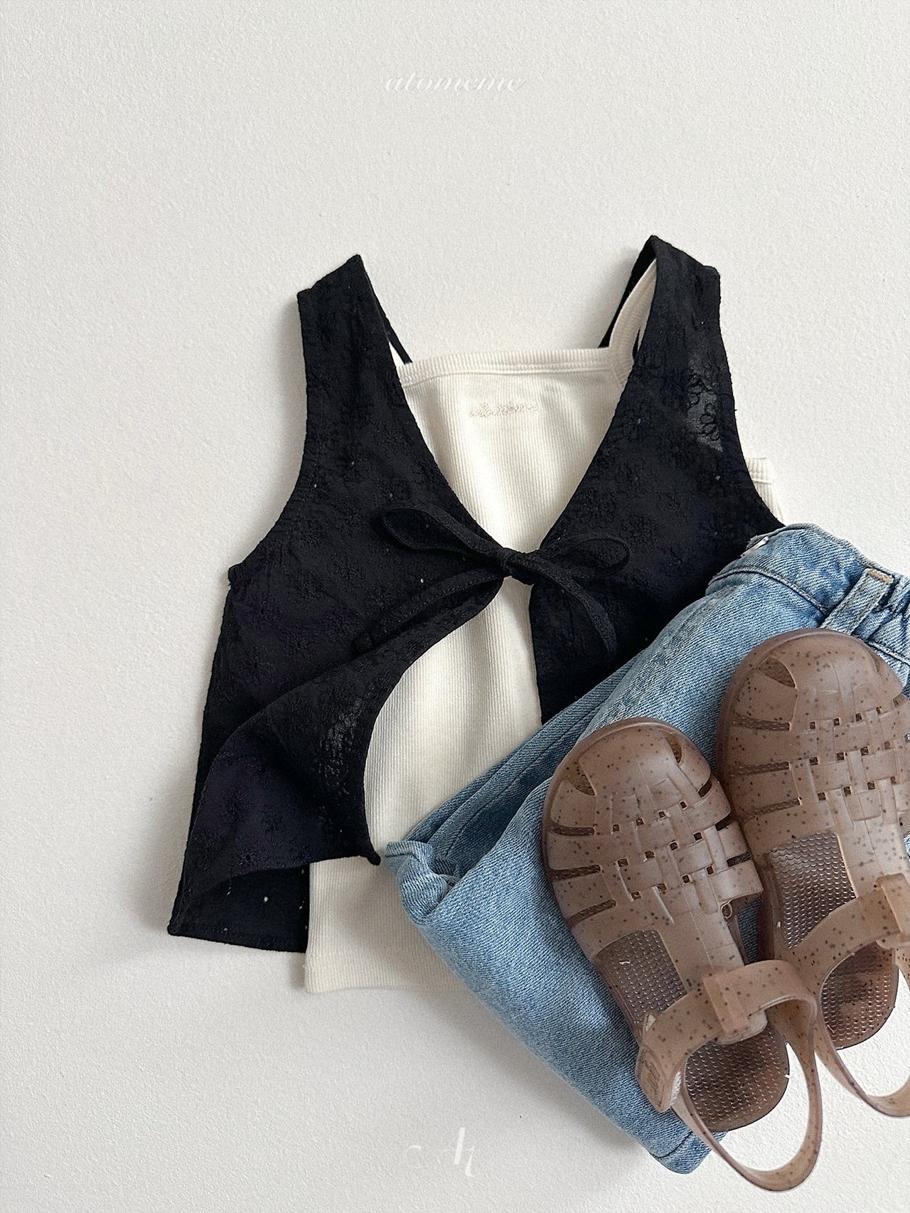 背面に可愛らしいリボンの留め具ディテールを加え、意外性のある